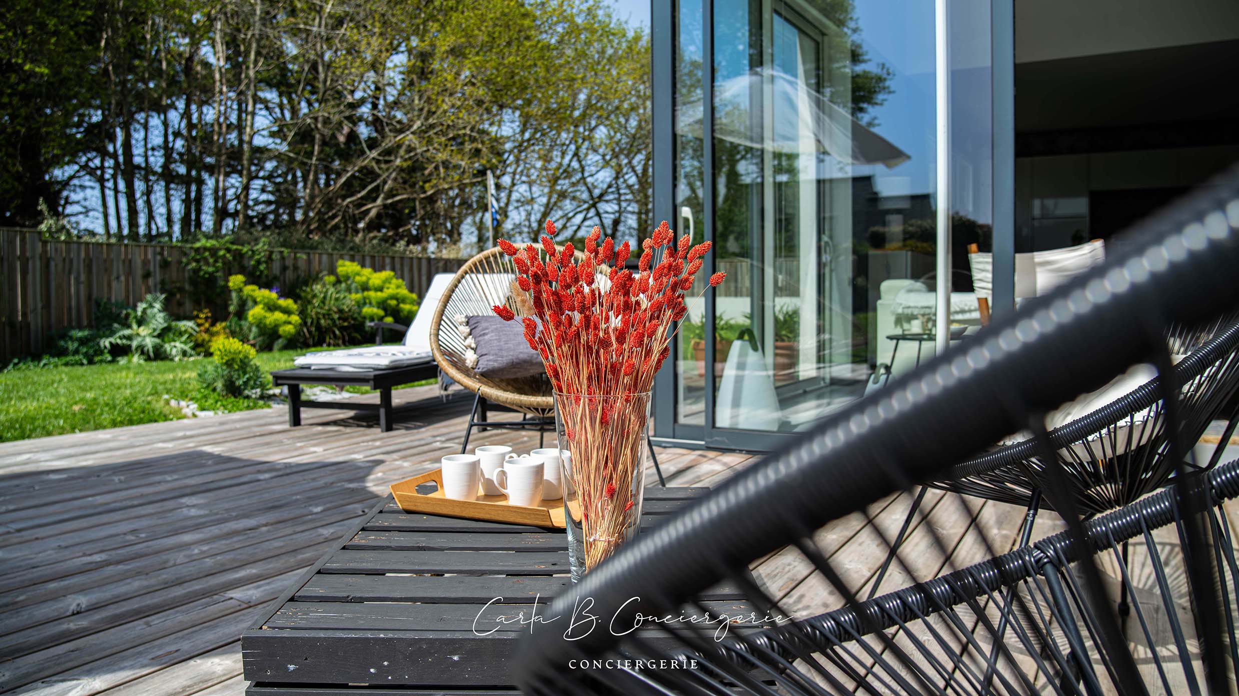 Découvrez notre magnifique maison contemporaine, idéalement située à seulement 400 mètres de la plage de la Belle Étoile. Profitez d’un accès direct au célèbre GR34 depuis votre jardin privatif et clos, parfait pour les amateurs de randonnée et de nature.